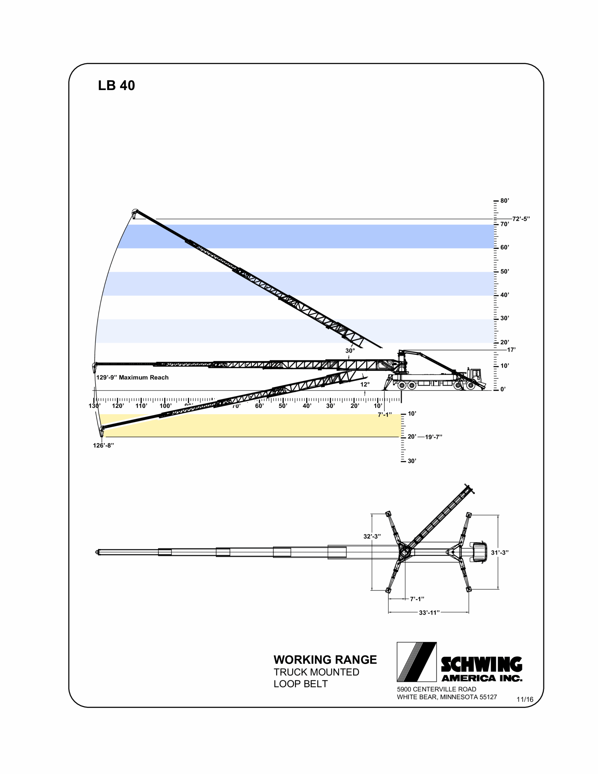 Horizontal Reach (Max at 0 degrees) 129’ 9” 39.56m